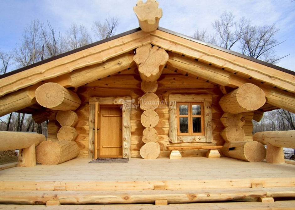 Баня из огромного кругляка создает атмосферу тепла и умиротворения, что помогает полностью расслабиться и отключиться от повседневной суеты.